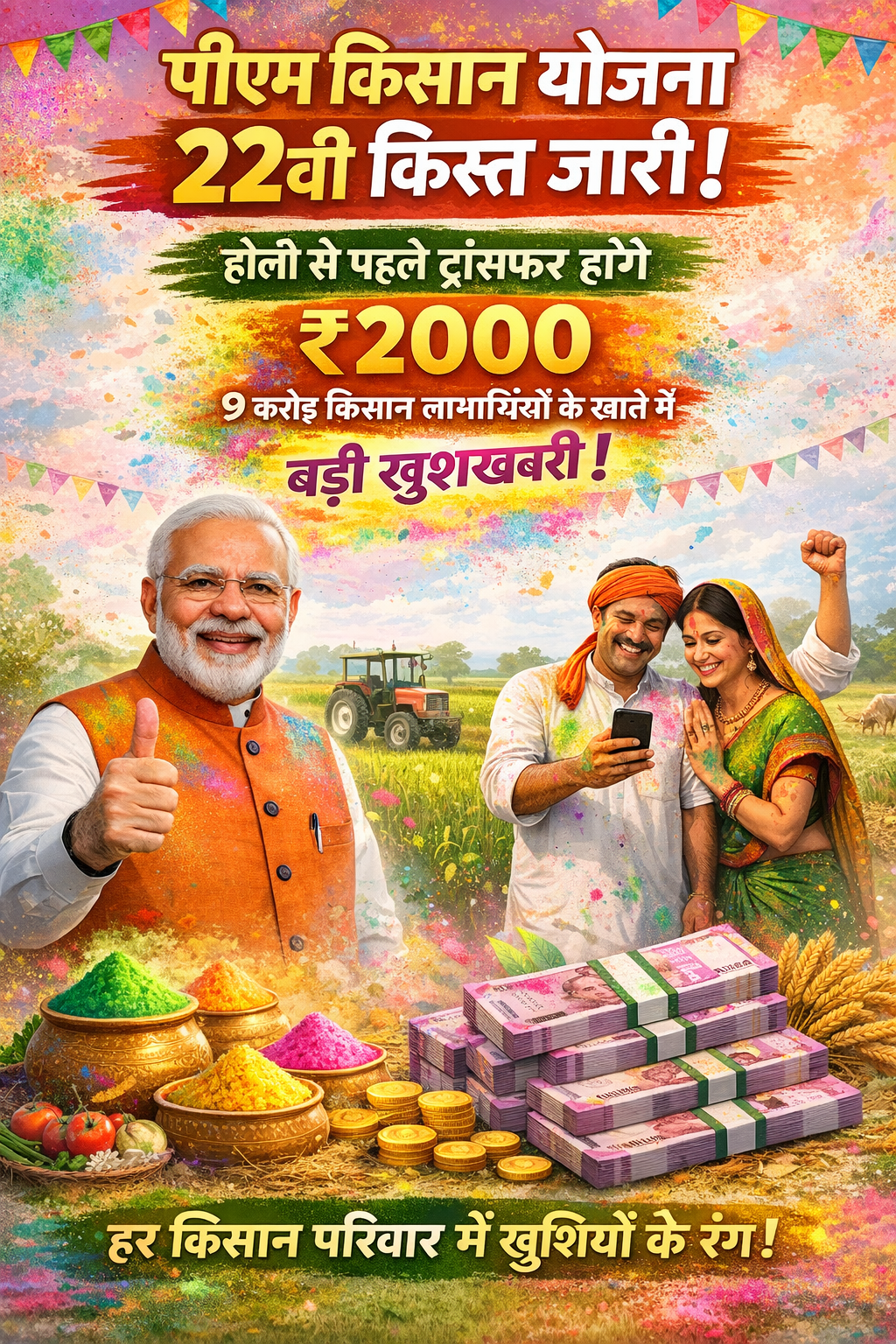 कई सूत्रों से पता चला है कि होली से पहले पहले किसानों को 22 किस्त माननीय प्रधानमंत्री श्री नरेंद्र मोदी जी के द्वारा दिया जाएगा